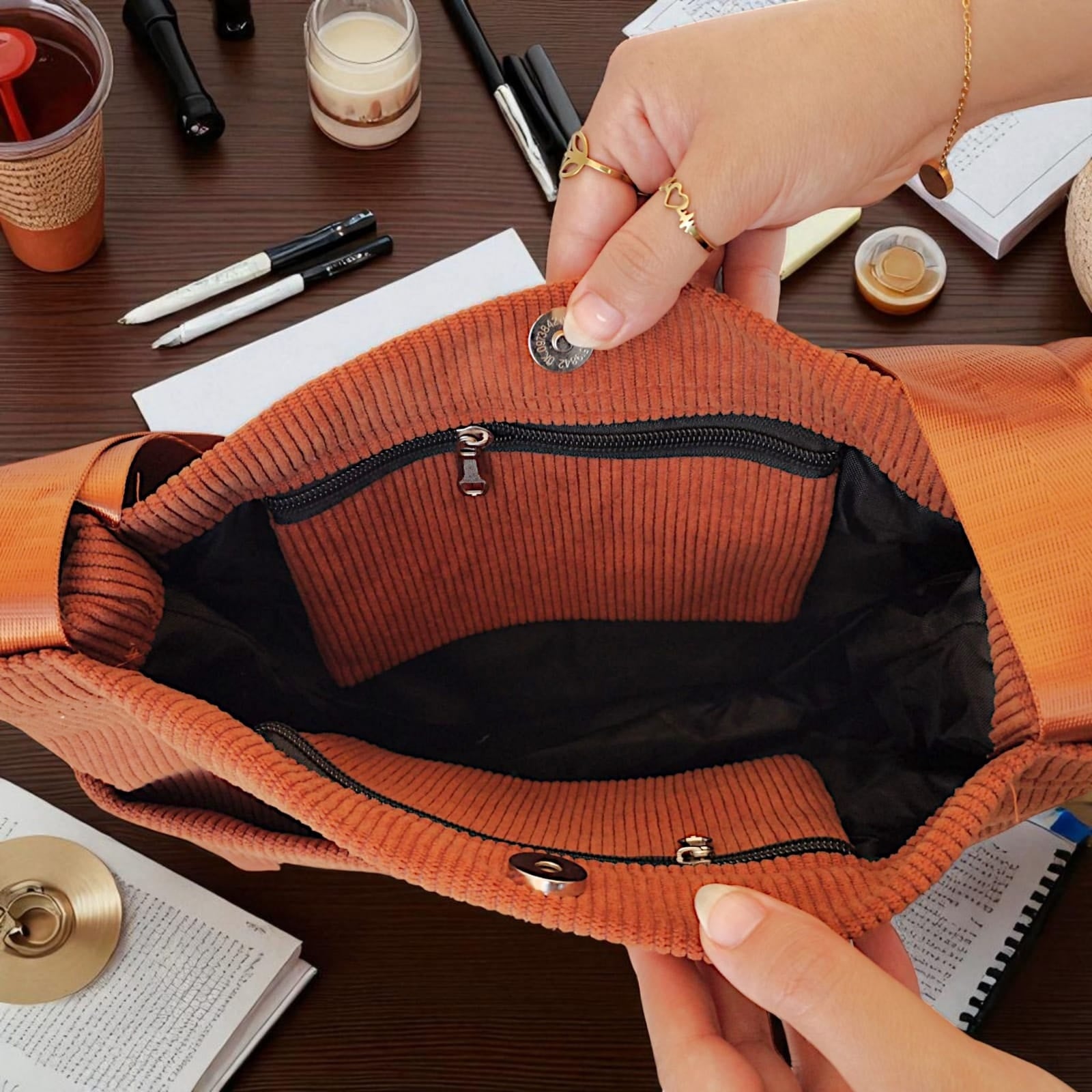 BAMM Corduroy Canvas Tote Bag for Women – Stylish Shoulder Bag for Travel, School & Daily Use (8006)