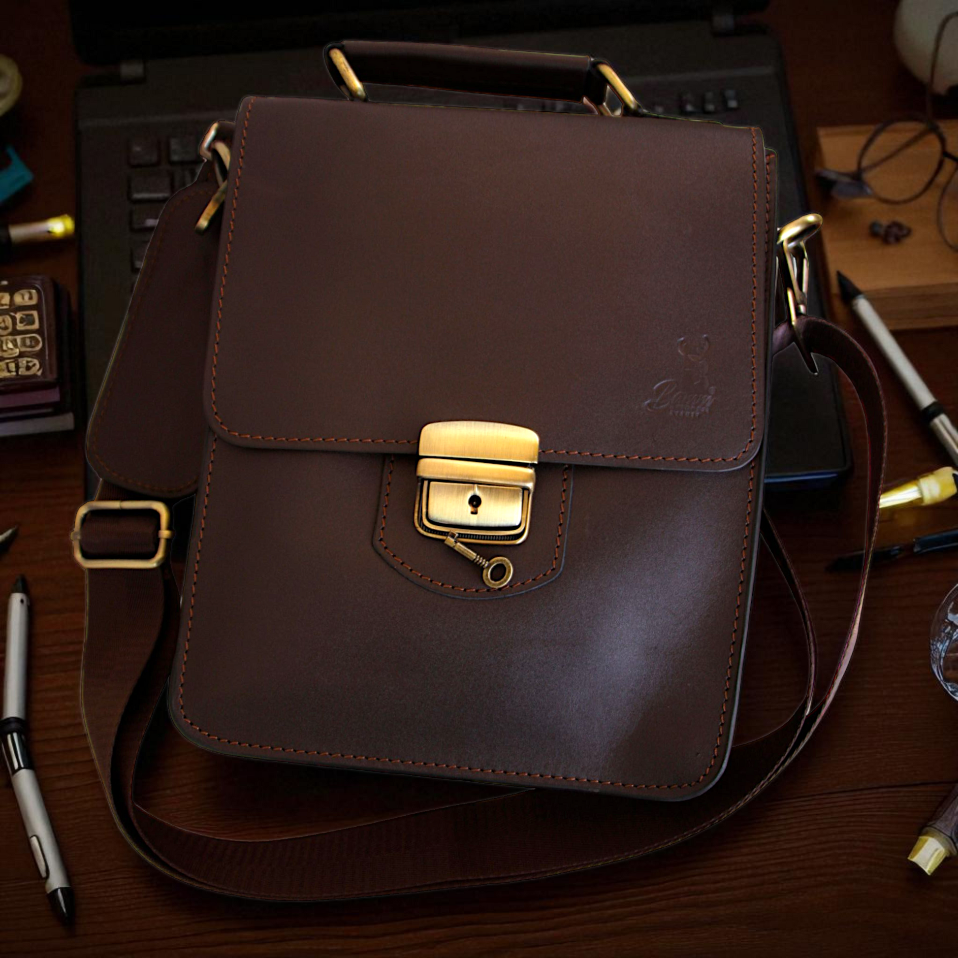 Men’s Genuine Leather Crossbody Bag with Lock & Key – Shoulder Messenger Bag 26×20×10 cm 2241 mo