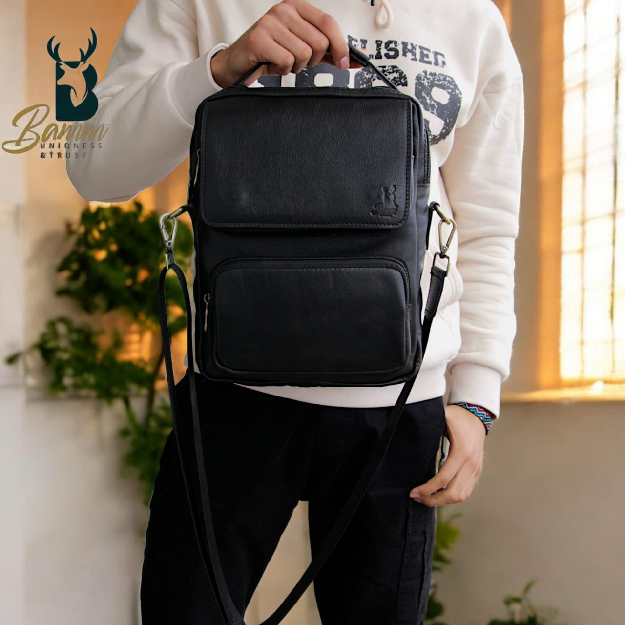 Achieve the perfect blend of style and functionality with this men's genuine leather handbag. Designed with a practical size (25x30 cm), it provides the ideal storage space for your essentials such as your phone, wallet, documents, and keys, ensuring security and easy access.
