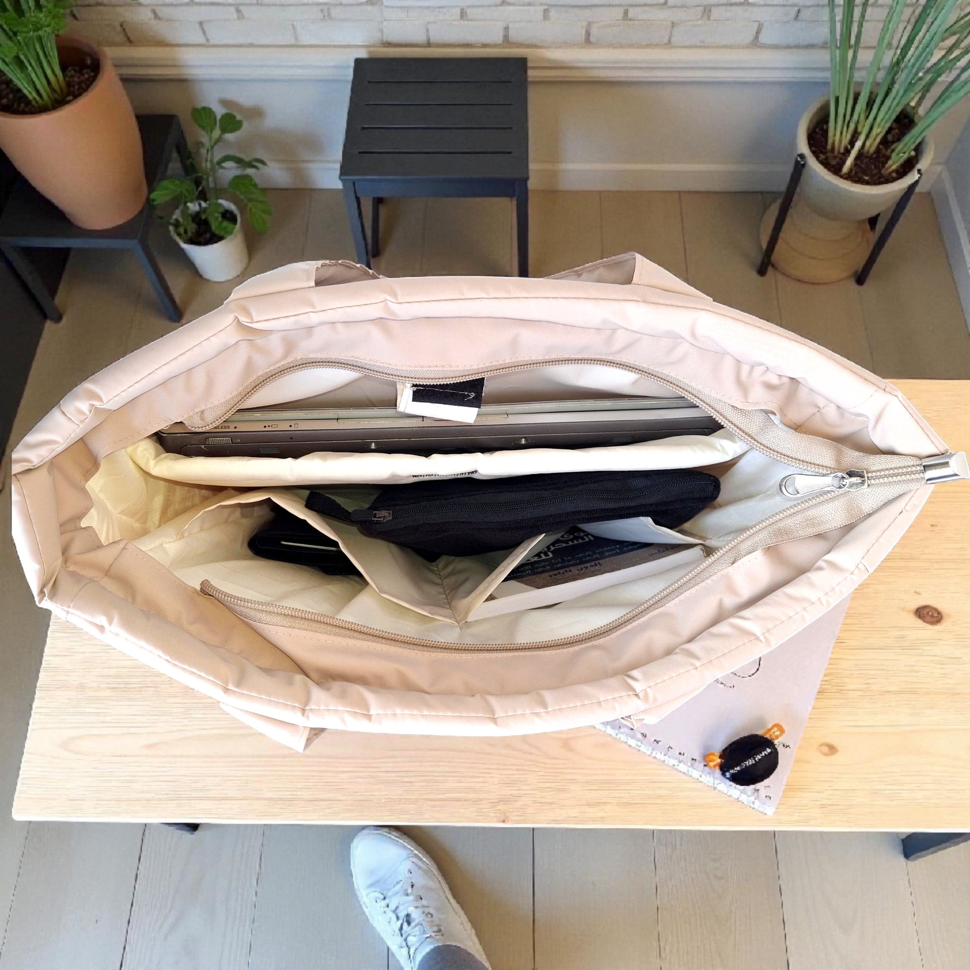 With a fully padded interior and a perfect size (35×37×10 cm), this bag is your ideal companion for every occasion.